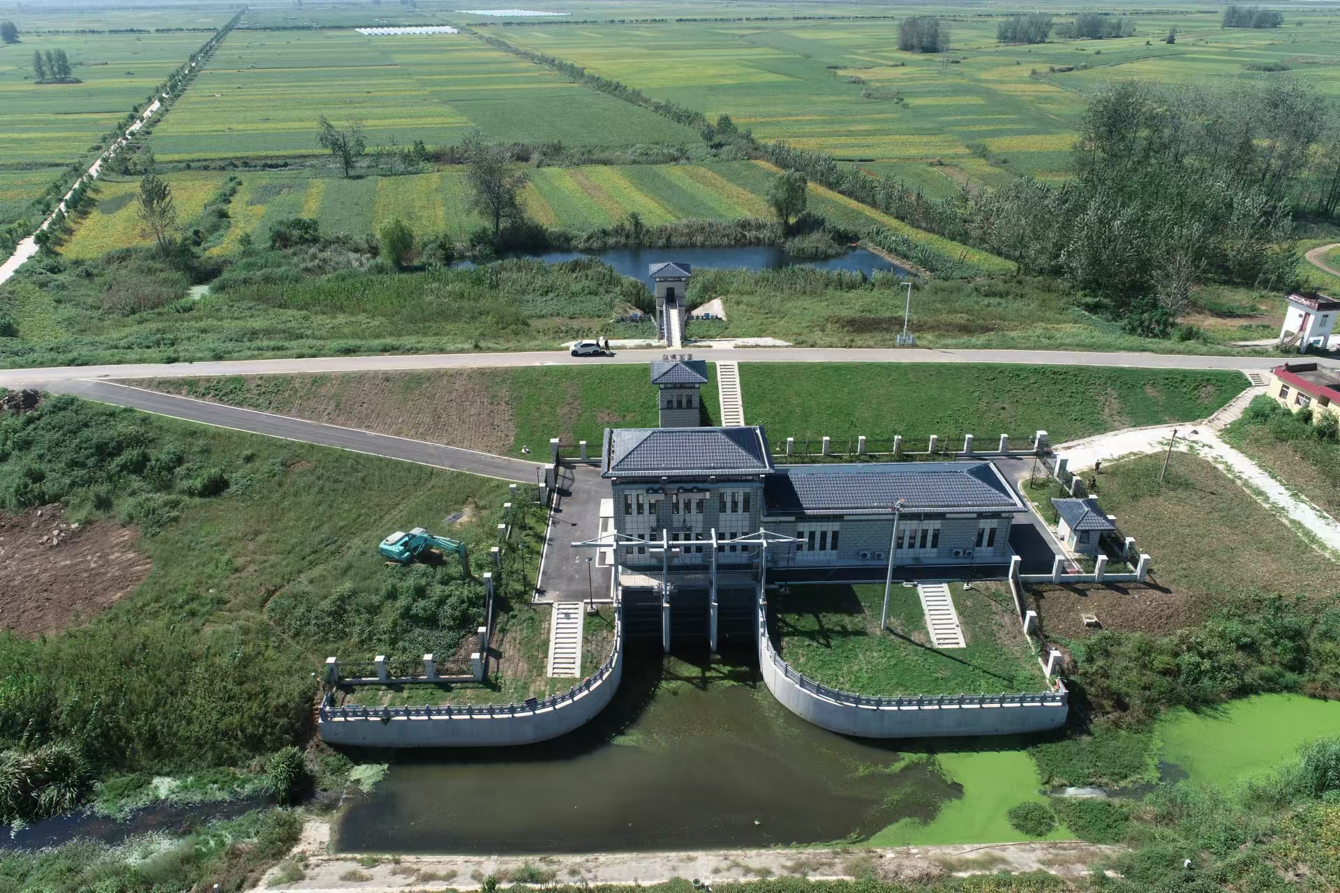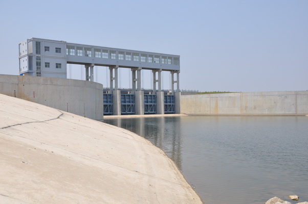 八里河閘  潁上縣八里河閘位于沙潁河潁右右堤,新建八里河閘為6孔涵洞,三孔一聯。控制流域面積483km2,5年一遇設計除澇流量264m3/s,垂直水流方向總